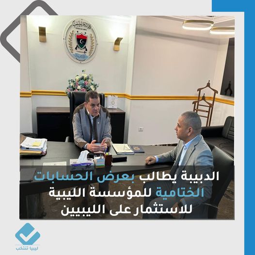 أكد رئيس الحكومة عبد الحميد الدبيبة ضرورة استكمال أعمال المراجعة وإقفال الحساب الختامي للمؤسسة الليبية للاستثمار حتى نهاية العام 2023، وإبراز هذه البيانات وعرضها لكل الليبيين باعتبارها الصندوق السيادي للدولة
